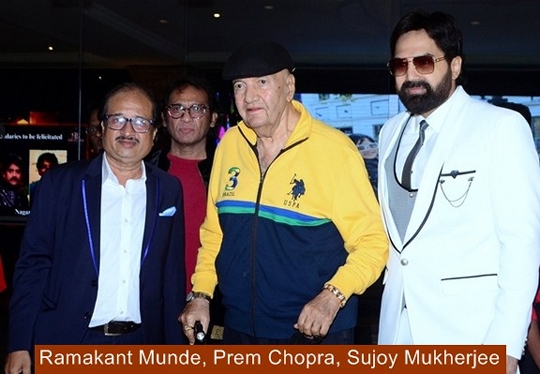 Incidentally it was CineBuster Magazine’s 6th anniversary and also a birthday of Ronnie Rodrigues’ mother and Ronnie Rodrigues’ twin sons Charles and Caaden’s 8th birthday. So all the occasions were celebrated by cutting a huge three tiered cake in the presence bunch of celebrities. Bollywood celebrities like Anandji Shah (from Kalyanji-Anandji Duo), Prem Chopra, Udit Narayan, Shakti Kapoor, Sujoy Mukherjee, Biswajit Chatterjee, director duo Abbas-Mustan, Mardaani 2’s antagonist Vishal Jethwa, tv star Gia Manek, Amika Shail, singer and Bigg Boss fame Jaan Kumar Sanu, Saba Khan, Somi Khan, Suman Talwar who represented southern film industry, Dheeraj Kumar, CBFC panel member G.K. Desai, director B. Subhash, Rajashree Production’s P K Gupta, music directors Dilip Sen, music composer Lalit Pandit took their precious time out to grace the occasion.