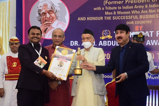 Young and dynamic entrepreneur Abhishek Kumar Burman was honoured with Bharat Ratna Dr. APJ Abdul Kalam India Achiever Award 2022 in “Champion Of Entrepreneurship” catagory at Governor House, Malabar Hill, Mumbai by hands of Maharashtra Governor Honorable Bhagat Singh Koshyari on the eve of death anniversary of our beloved Missile Man. Dr. Abdul Kalam Global Foundation organised and conducted this grand event.
