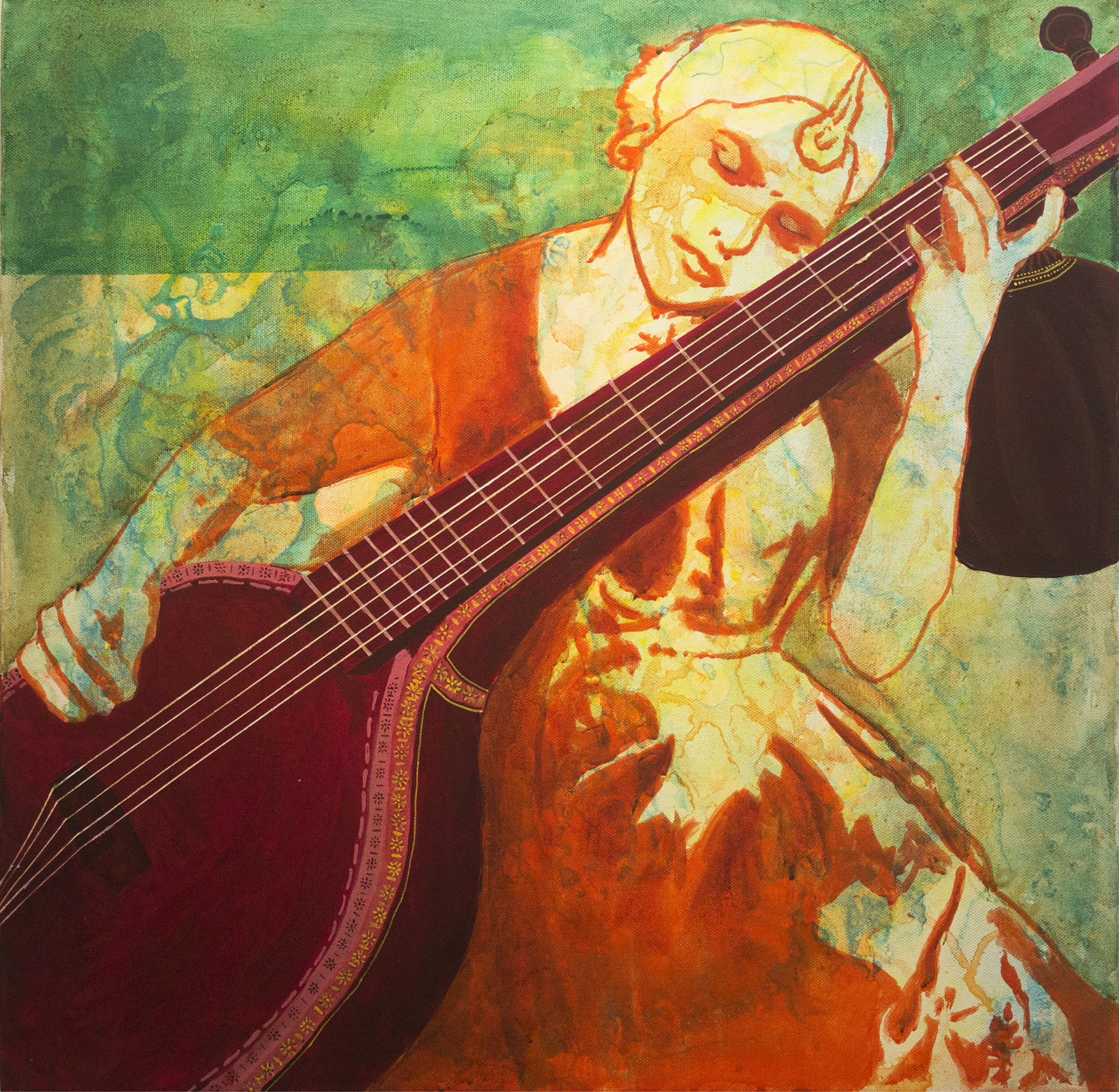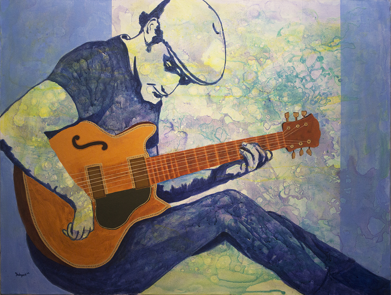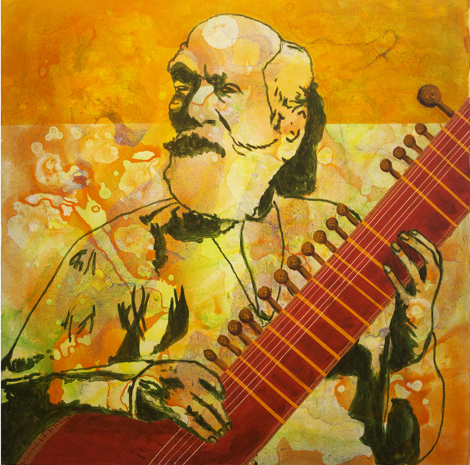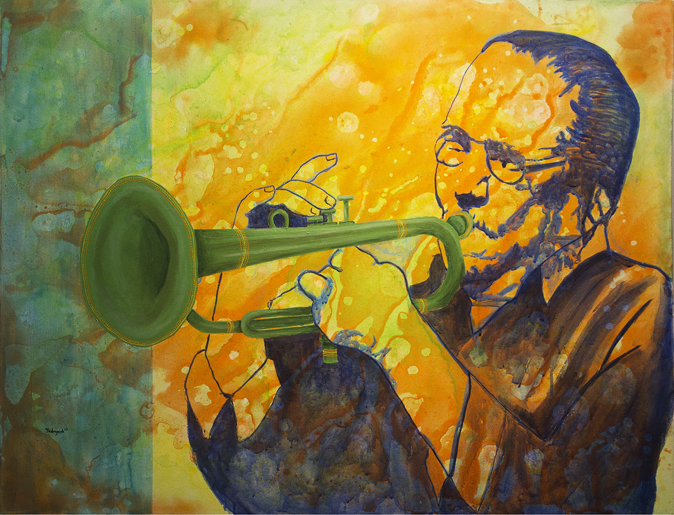 Yadnyesh Shirwadkar has artistically and aesthetically adorned his various creative works with layers over layers of apt colours through their harmony and rhythmic symphony which, in turn, produce eternal resonance of harmony and symphony of Music in apt perspectives. His deft handling of the theme showing various musicians playing different instruments and their engrossment and total dedication in their performances not only generate a mesmerising and divine musical effect on the listeners in particular and viewers in general but also all music lovers and lovers of art as well. Each work generates an artistic amalgamation of 7 colours and 7 musical notes and their rhythmic coherent harmonious illustrations. Being eloquent and thematically relevant, his works share an instant dialogue with the viewers due to their lyrical synchronism and sanctity in the relevant perspective of visual arts.