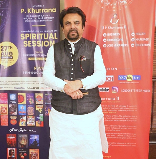 ज्योतिष से संबंधित 34 पुस्तकों के लेखक और एक अंतरराष्ट्रीय सेलेब्रिटी ज्योतिषी के रूप में प्रसिद्ध आचार्या पी. खुराना एक प्रख्यात व्यक्तित्व के मालिक हैं और मानव जाति के कल्याण के लिए लगातार कार्य कर रहे हैं। पी खुराना भारत के सर्वश्रेष्ठ ज्योतिषियों में से एक हैं। कुंडली, वास्तु टिप्स और काल सर्प दोष के लिए शीर्ष भारतीय ज्योतिषी पी खुराना की व्यावहारिक आध्यात्मिक शिक्षाएँ इतनी बेहतर हैं कि उनके द्वारा की गई भविष्यवाणियाँ कभी गलत नहीं होती हैं। एस्ट्रो इंडिया की परिकल्पना पी. खुराना ने की है। पिछले दिनों मुम्बई के मिलेनियम क्लब में उनका एक स्प्रिचुअल सेशन रखा गया जहां उन्होंने एस्ट्रोलॉजी और हमारी आधुनिक जीवम शैली में इसके प्रभाव पर बातें की। आचार्या पी खुराना की शिष्या शिल्पा धर भी इस अवसर पर मौजूद रहीं।