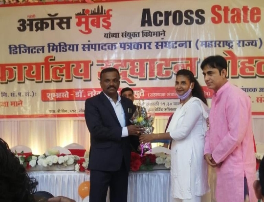 मुंबई में डिजिटल मीडिया संपादक पत्रकार संगठन के कार्यालय उद्घाटन के अवसर पर राजनीत , फिल्म व मीडिया जगत की तमाम हस्तियां मौजूद रही ।इस अवसर पर डिजिटल मीडिया संपादक पत्रकार संगठन मुंबई के अध्यक्ष संजय भैरे ने सभी मेहमानों का सत्कार किया । वहीं पर ह्यूमैनिटी फाउंडेशन की ट्रस्टी रेशमा शेख ने संजय भैरे को पुष्प गुच्छ देकर उनका  स्वागत करते हुए डिजिटल मीडिया संपादक पत्रकार संगठन की उज्जवल भविष्य की कामना करने हुए उन्हें और संगठन के पूरी टीम को बधाई दी।