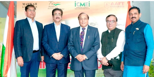 Noida: it was an extension of the numerous programs designed by International Chamber of Media and Entertainment Industry to celebrate the Azadi Ka Amrit Mahotsav on the occasion of 75th Independence Day of India at Marwah Studios, Film City Noida when Lord Rami Ranger was invited to the International Headquarters to address the members of the Chamber.