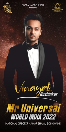 This year Mr Vinayak Rashinkar of Ichalkaranji will represent India at this esteemed Male pageant.